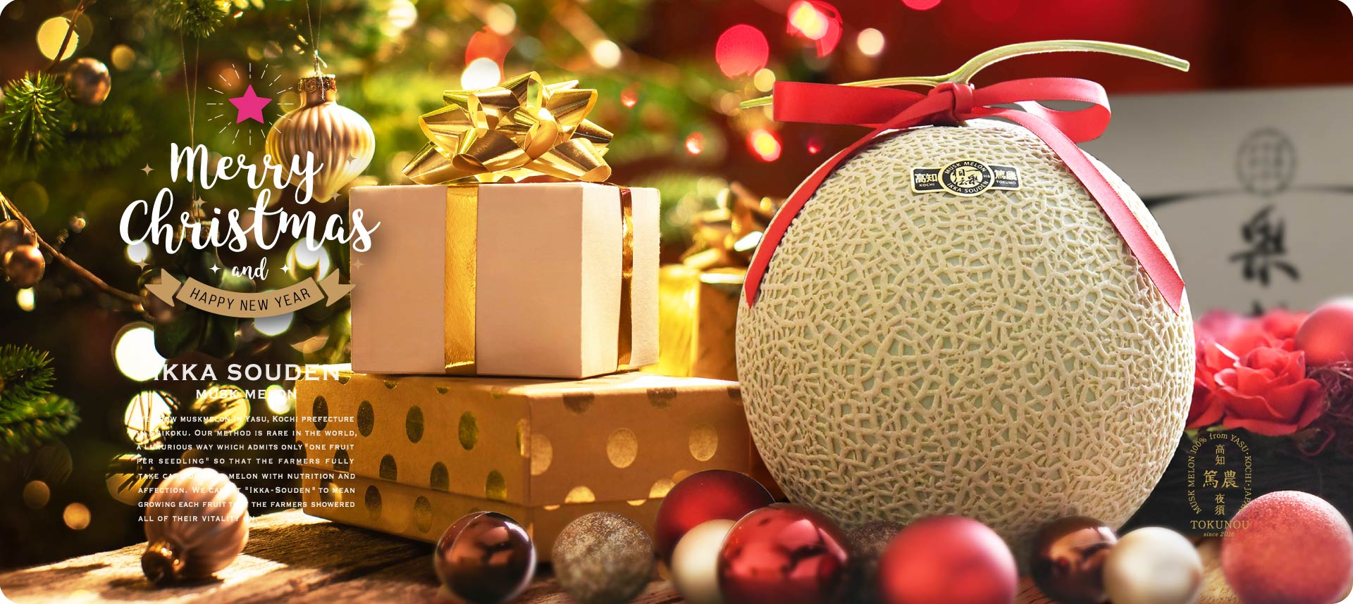 新年のご挨拶、大切な方への贈り物には、どんなシーンにもふさわしいマスクメロンを。掛け紙などご相談ください。