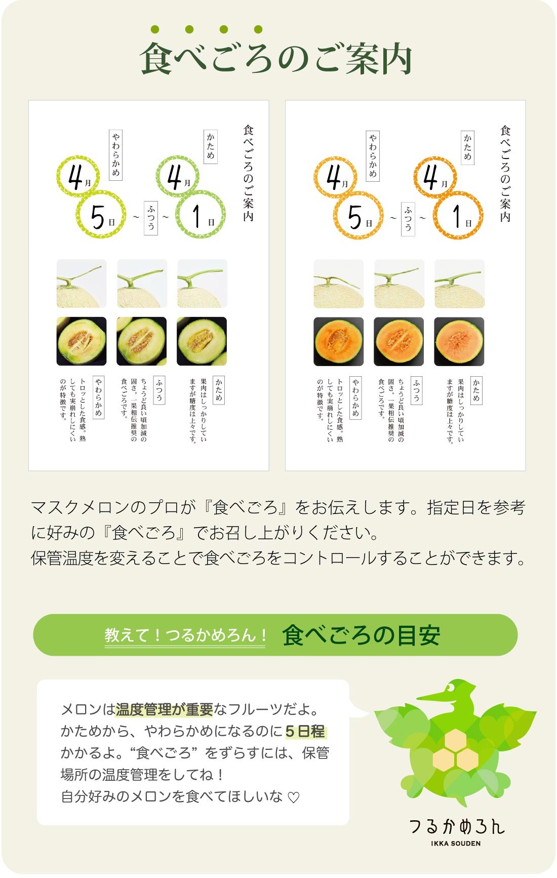 食べごろの違うメロンを入れる対応は出来ませんが、届いてから冷蔵庫に入れるなど保管温度を変えることで1週間ほど遅らせることが出来ます。