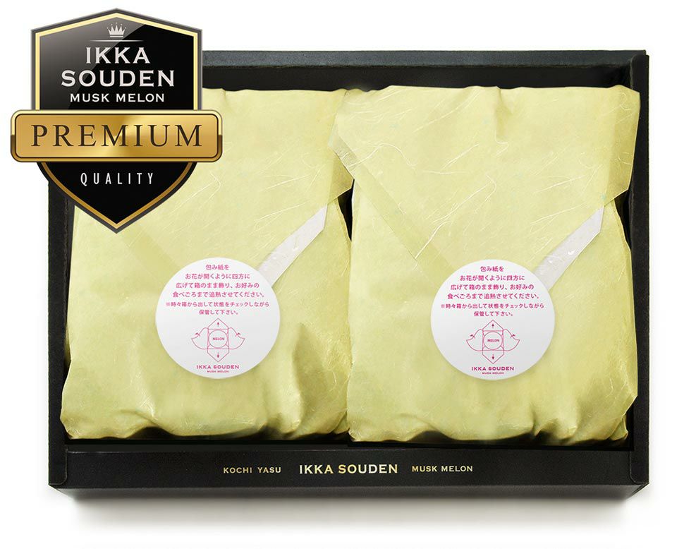 一果相伝マスクメロンの【特選】は、年間約100,000個の中から〈味・形・網目〉の厳しい選考基準をクリアした最上級品です。マスクメロンを和紙で包み、その姿はまるで花が咲いたようです。箱のまま、マスクメロンの追熟をお楽しみください。